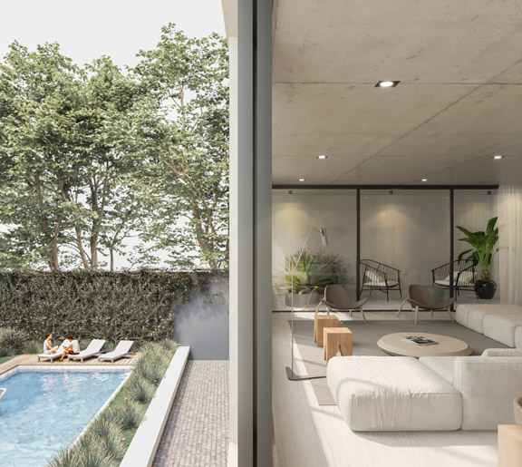 A la exclusividad de su ubicación se le suma una cantidad de zonas privadas para los propietarios, entre as que se destacan, el gimnasio, sauna, la piscina, jardines y entrada directa al bar desde el interior del complejo.
